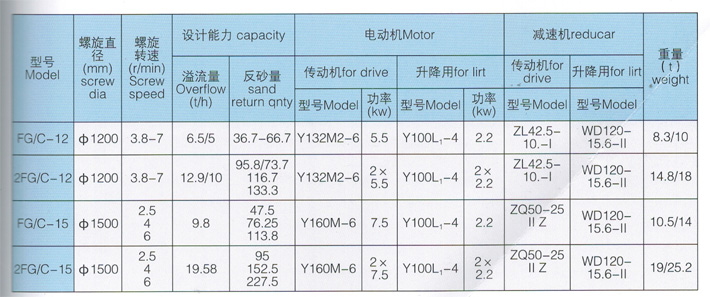 主要用于金屬選礦流程中對礦漿進行力度分級,根據(jù)螺旋數(shù)量可以分為單螺旋,雙螺旋;根據(jù)螺旋葉片浸入溢流面深度可分為高晏式、沉沒式兩種。前者用于溢流粒度0.83-0.15mm的礦石分級,后者用于溢流粒度0.15-0.07mm的礦石分級。